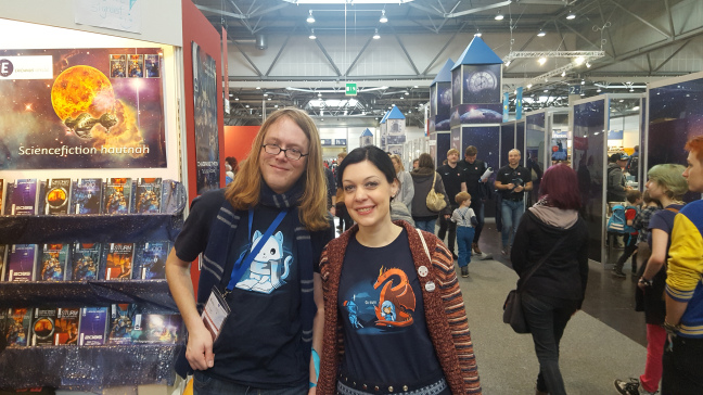 Auch meine liebe Autorenkollegin Katharina Olbert konnte ich wiedersehen (und umarmen), nachdem sie sich extra für mich noch einmal durch die volle Halle 2 zum Nornennetzstand durchgekämpft hatte.