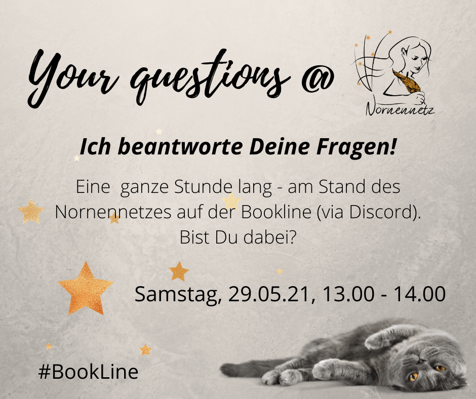 Persönlich starte ich am Samstag mit einer weiteren Runde Q&A, bei der ich nochmals alle eure Fragen beantworte – egal ob zum Schreiben, zur Dystopie, zur Phantastik, zum Nornennetz oder zu Katzen.