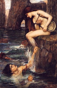 Auf dem Gemälde war ein junger Mann zu sehen, in einem blauen Gewand mit einem auffälligen roten Gürtel. Er beugte sich über ein Gewässer, das über und über mit Seerosen bedeckt war. Und im Wasser vor ihm befanden sich sieben junge Mädchen, dem Mann zugewandt. Zum Teil berührten sie sogar seine Arme, sein Bein, schienen sanft daran zu ziehen. Einladend? Bittend? Oder bedrohlich?